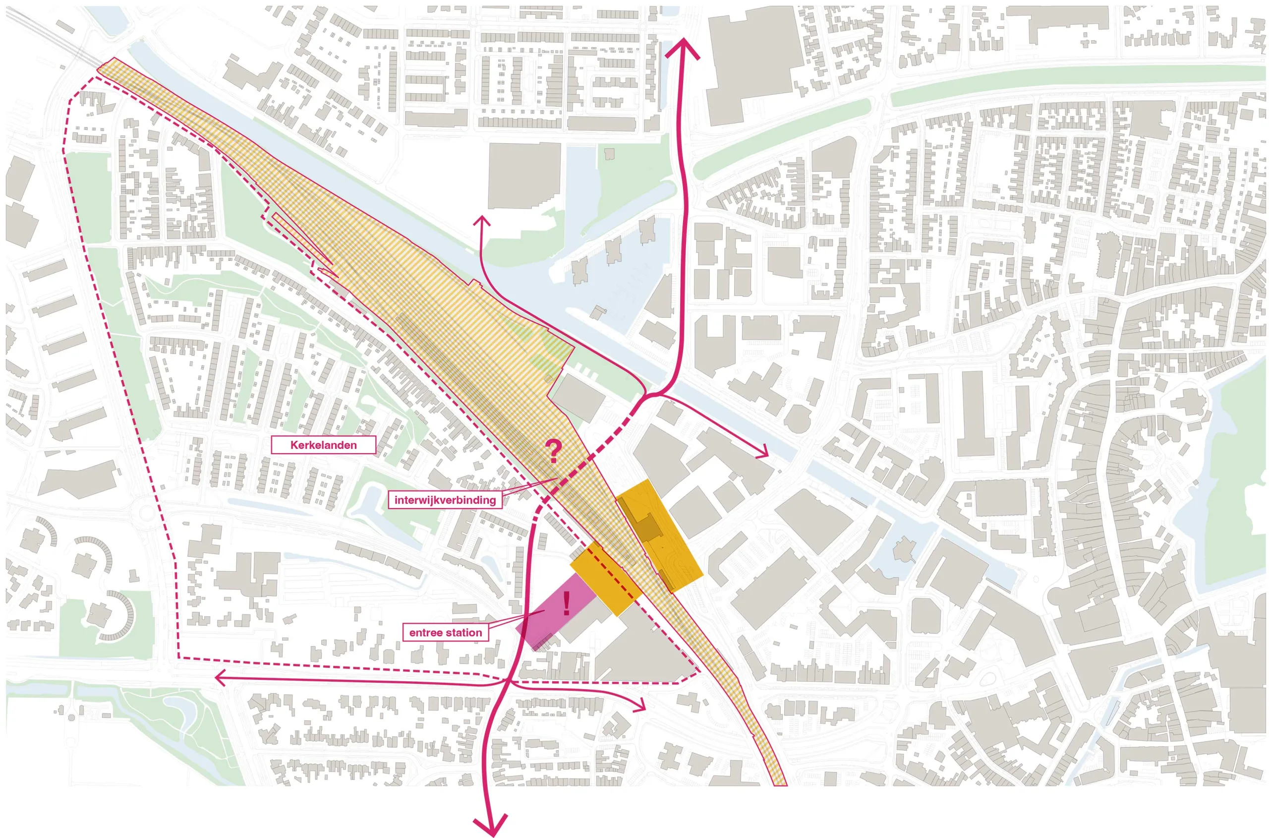 De meest kansrijke positie voor een extra interwijkverbinding ligt in een goede aansluiting met de stadsdelen ten noorden en zuiden van het centrum